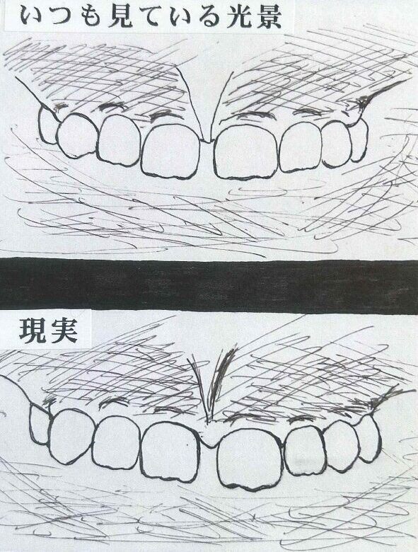 「●●の歯が抜けたままなんだって」
